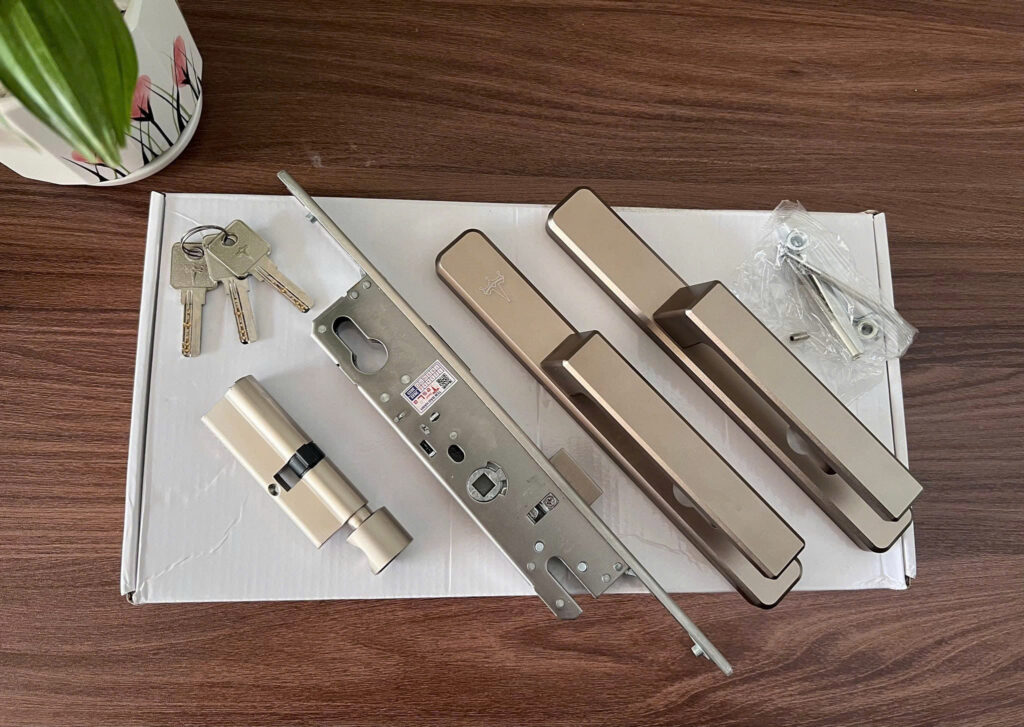 - Khóa cửa: khóa đơn điểm, khóa đa điểm, khóa lùa, khóa chốt âm an toàn.