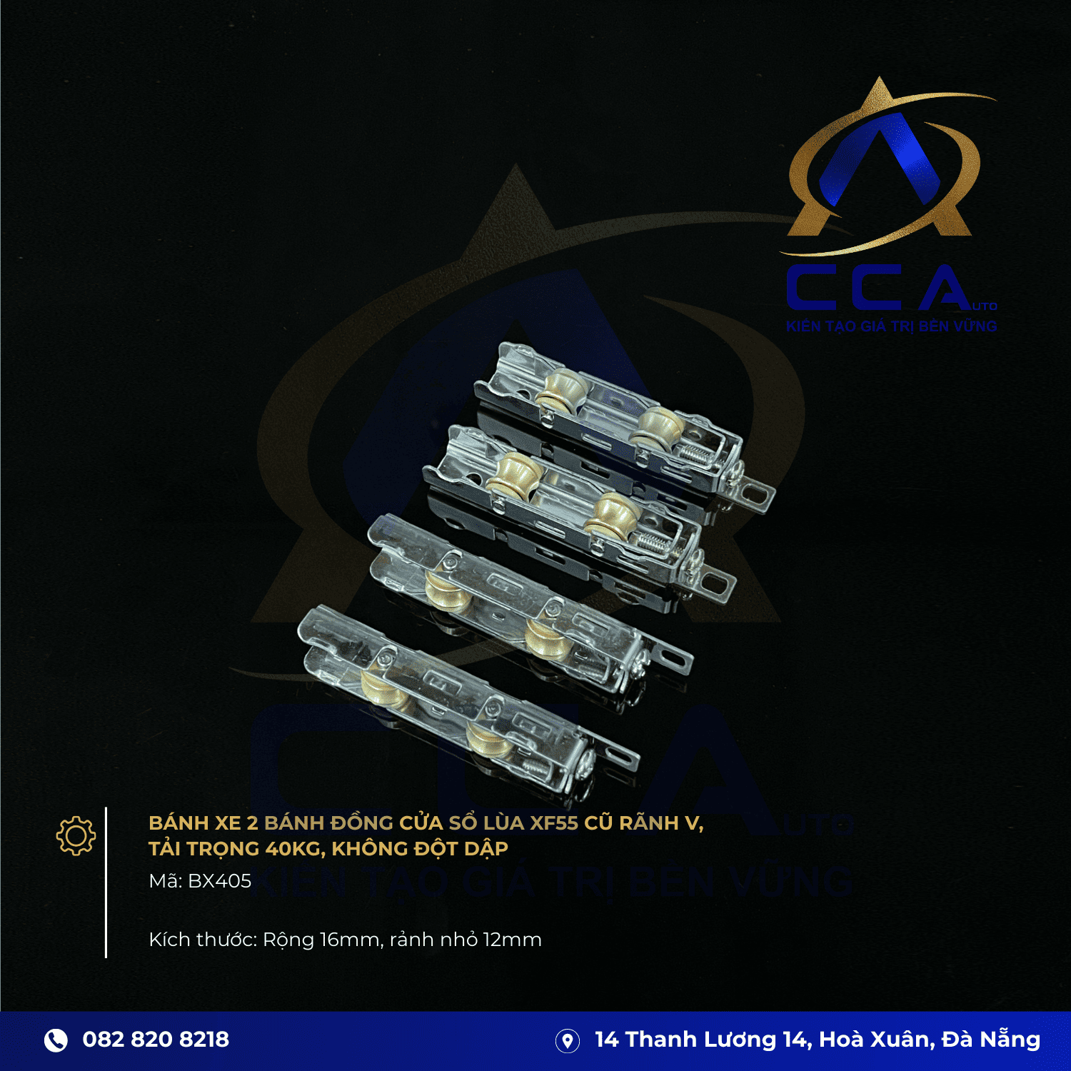 Sản phẩm Bánh Xe Đôi Đồng BX202 là phụ kiện chuyên dụng cho các hệ cửa sổ nhôm lùa XF55 đời cũ sử dụng rãnh V (rãnh nhỏ 12mm). Với cấu tạo 2 bánh xe và vật liệu đồng/kim loại cao cấp, bánh xe này mang lại khả năng chịu tải ổn định 40 Kg, đảm bảo cửa sổ vận hành trơn tru và bền bỉ qua nhiều năm. Đặc biệt, BX202 được thiết kế để lắp đặt không cần đột dập, tiện lợi cho việc thay thế và sửa chữa.