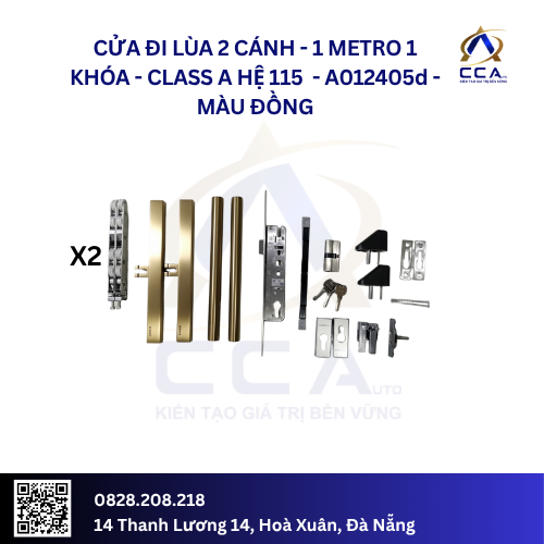 Cửa Đi Lùa 2 Cánh – 1 Tay Nắm Metro 1 – Class A Hệ 115 – (Combo)