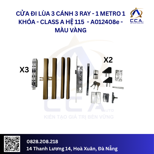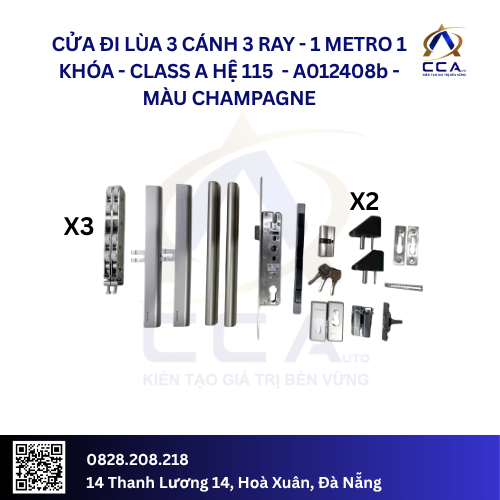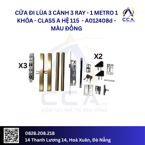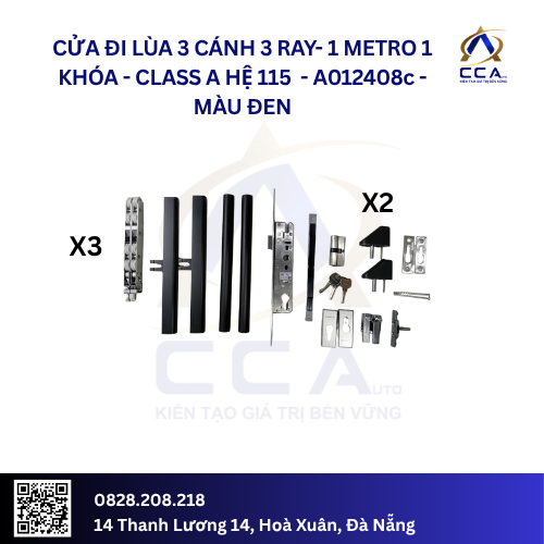 Cửa Đi Lùa 3 Cánh 3 Ray – 1 Metro 1 Khóa – Class A Hệ 115 – (Combo)