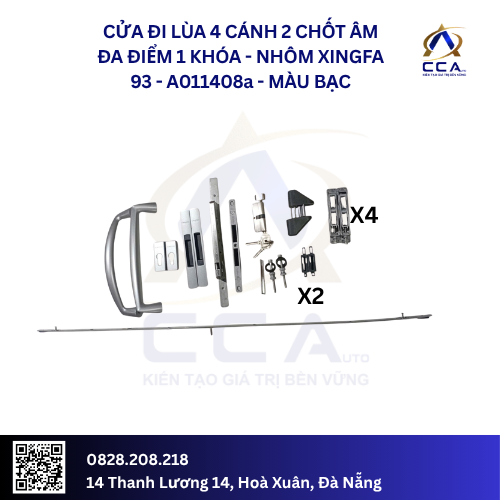 Bộ phụ kiện CMECH là lựa chọn hoàn hảo cho cửa đi lùa 4 cánh Nhôm Xingfa 93 kích thước lớn, đảm bảo sự cân bằng giữa độ bền, thẩm mỹ và an ninh. Hãy liên hệ ngay để được tư vấn chi tiết về bộ phụ kiện cao cấp này!