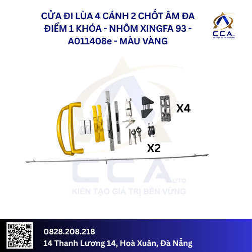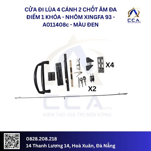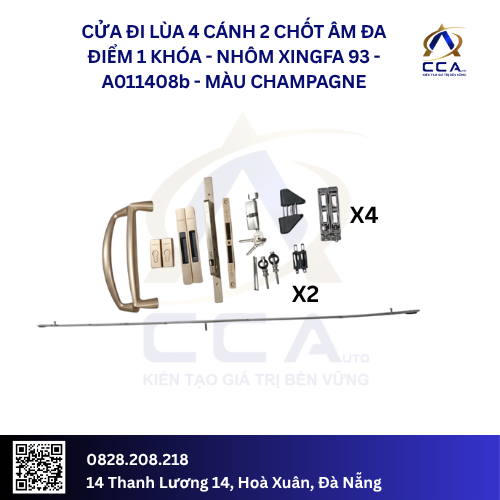 Cửa Đi Lùa 4 Cánh 2 Chốt Âm Đa Điểm 1 Khóa – Nhôm Xingfa 93 – A011408 (Combo)