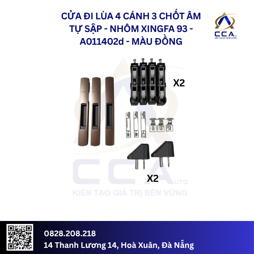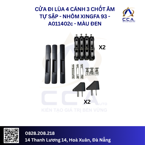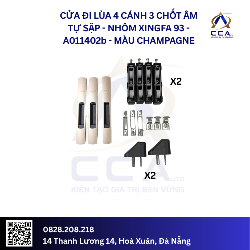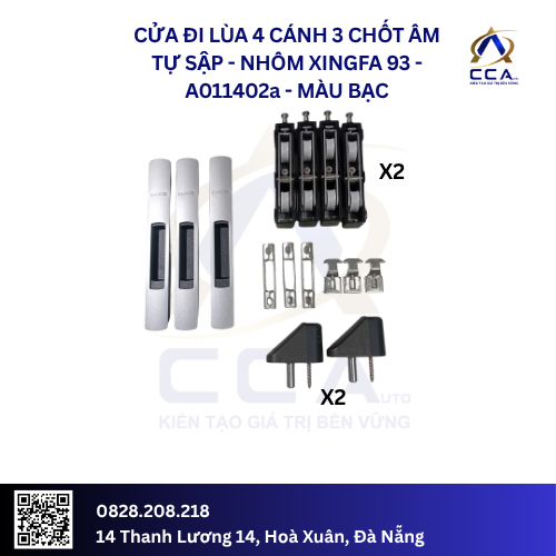 Bộ phụ kiện CMECH Chốt Âm Tự Sập là lựa chọn hoàn hảo cho cửa lùa 4 cánh Xingfa 93, mang đến sự kết hợp vượt trội giữa tiện nghi, an toàn và thẩm mỹ. Hãy liên hệ ngay với chúng tôi để nâng cấp không gian sống của bạn!