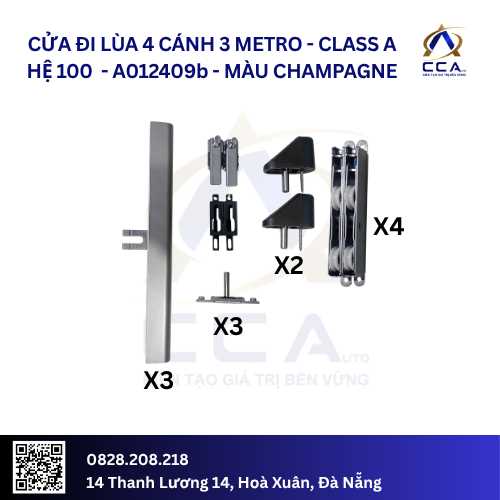 Bộ Phụ Kiện Cửa Đi Lùa 4 Cánh 3 Metro- Class A Hệ 100 – (Combo)