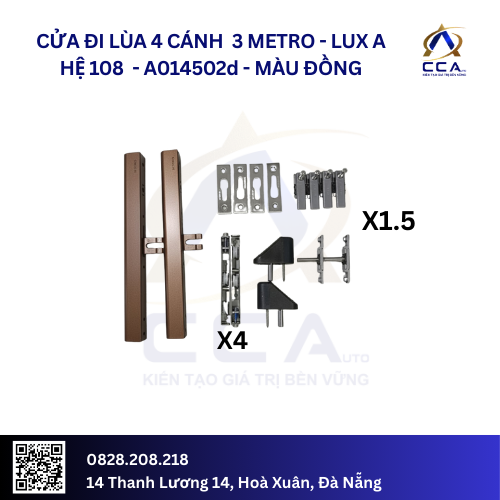 Lựa chọn Combo phụ kiện Lux A Hệ 108 chính là đầu tư vào sự bền bỉ và tính thẩm mỹ lâu dài cho ngôi nhà của bạn. Hãy liên hệ ngay để nhận được tư vấn kỹ thuật chuyên sâu và giải pháp lắp đặt tối ưu nhất cho hệ cửa lùa 4 cánh.