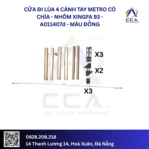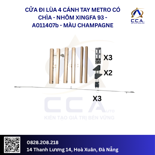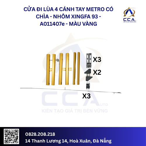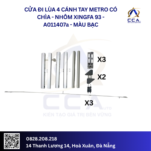 🔐 Cửa Đi Lùa 4 Cánh Tay Metro Có Chìa – Nhôm Xingfa 93 – A011407 (Combo)