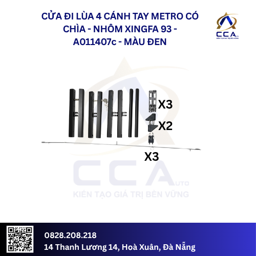Bộ phụ kiện CMECH Tay Metro Có Chìa là giải pháp tối ưu cho cửa lùa 4 cánh Xingfa 93, mang đến sự kết hợp hoàn hảo giữa an ninh, độ bền và tính thẩm mỹ cao cấp.