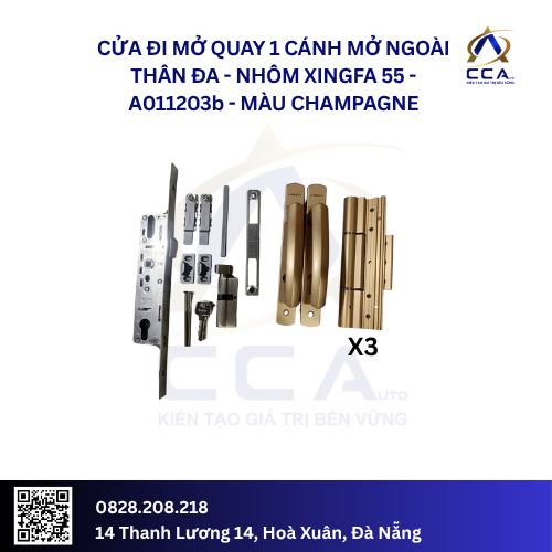 Hệ nhôm tương thích: Xingfa 55 | Loại khóa: Đa Điểm | Cơ chế: Mở Ngoài 1 Cánh