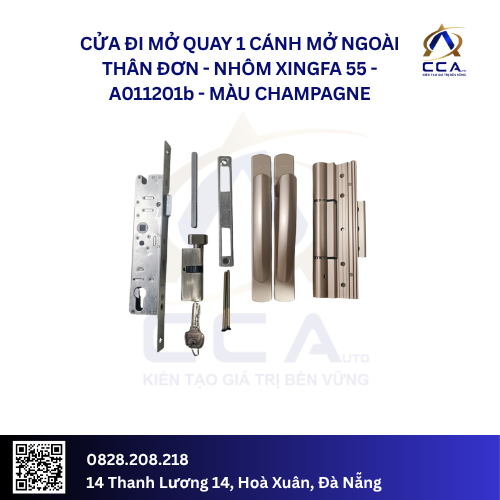 Hệ nhôm tương thích: Xingfa 55 | Loại khóa: Đơn Điểm | Cơ chế: Mở Ngoài 1 Cánh