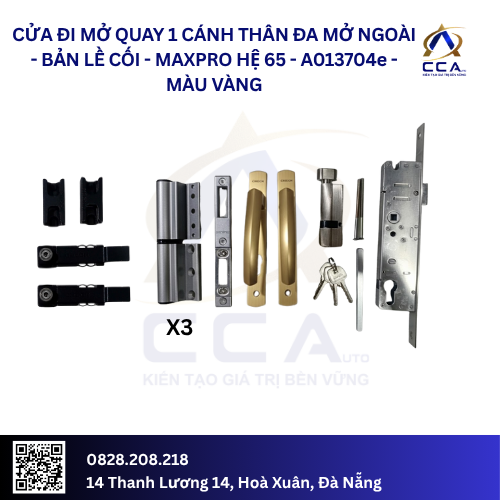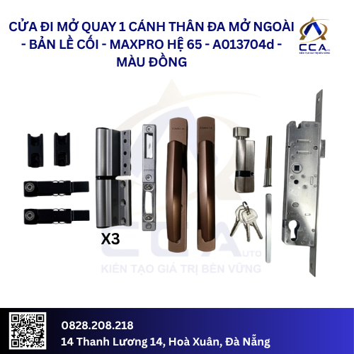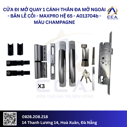Giới thiệu Bộ phụ kiện Cửa đi mở quay 1 cánh MAXPRO hệ 65 – Thân đa – Bản lề cối PA2, giải pháp hoàn hảo cho cửa nhôm của bạn. Bộ sản phẩm này được cấu hình đầy đủ và đồng bộ, không chỉ đảm bảo độ kín khít tuyệt đối mà còn mang lại khả năng vận hành nhẹ nhàng và độ bền vượt trội cùng thời gian. Đây là lựa chọn tối ưu cho cả cửa có kích thước lớn.