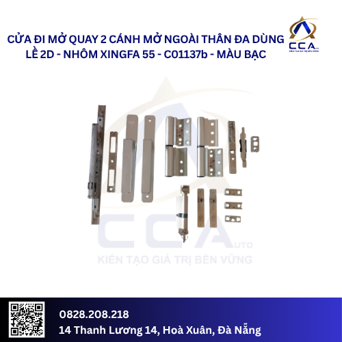 🚪 Cửa Đi Mở Quay 2 Cánh Mở Ngoài Thân Đa Dùng Lề 2D – Nhôm xingfa 55 – C01137 (Combo)