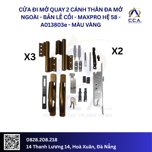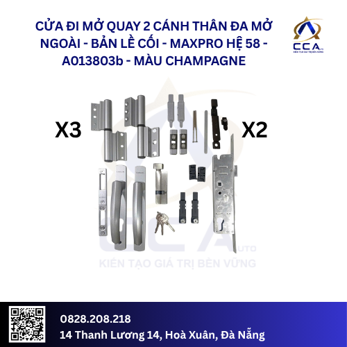 Lựa chọn bộ phụ kiện A013803 là đầu tư vào chất lượng và sự an toàn lâu dài cho cửa đi 2 cánh mở ngoài sử dụng hệ nhôm MAXPRO Hệ 58. Đặt mua ngay bộ combo chính hãng để đảm bảo cửa vận hành ổn định và bền bỉ cho công trình của bạn!