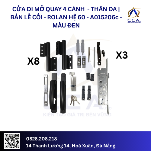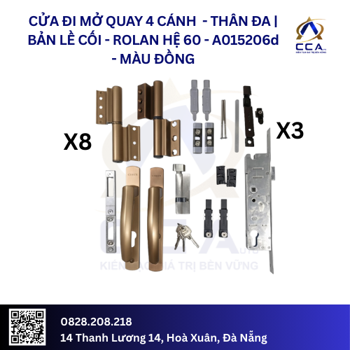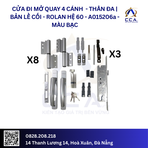 Cửa Đi Mở Quay 4 Cánh – Thân Đa| Bản Lề Cối – Rolan Hệ 60 – A015206 – (Combo)