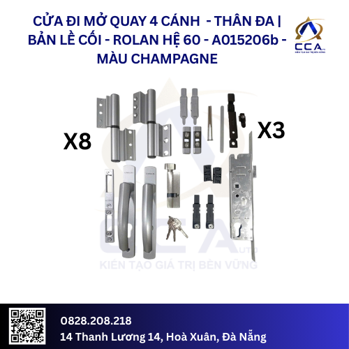 Với bộ Combo phụ kiện Rolan A015206, quý khách hàng hoàn toàn có thể yên tâm về chất lượng vận hành và độ thẩm mỹ cho hệ cửa đi 4 cánh của mình. Đây chính là giải pháp nâng tầm giá trị cho mọi công trình kiến trúc.