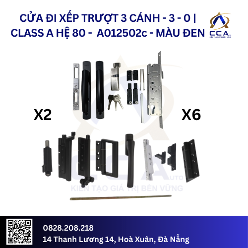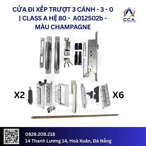 Chọn Combo phụ kiện cửa xếp trượt 3 cánh hệ 80 Class A (A012502) để nâng cấp hệ cửa của bạn với độ an toàn đa điểm và khả năng vận hành hoàn hảo. Đảm bảo chất lượng, độ bền bỉ và sự êm ái tối đa.