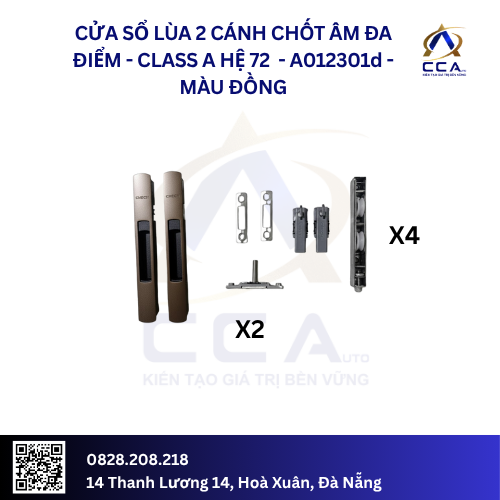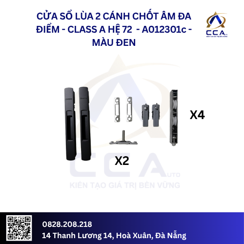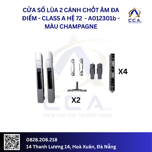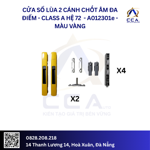 Cửa Sổ Lùa 2 Cánh Chốt Âm Đa Điểm – Class A Hệ 72 – A012301 – (Combo)