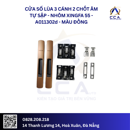 💎 Cửa Sổ Lùa 3 Cánh 2 Chốt Âm Tự Sập – Nhôm Xingfa 55 – A011302 (Combo)