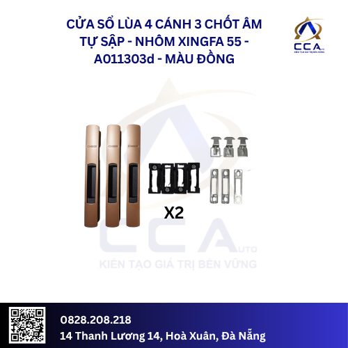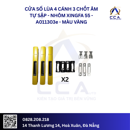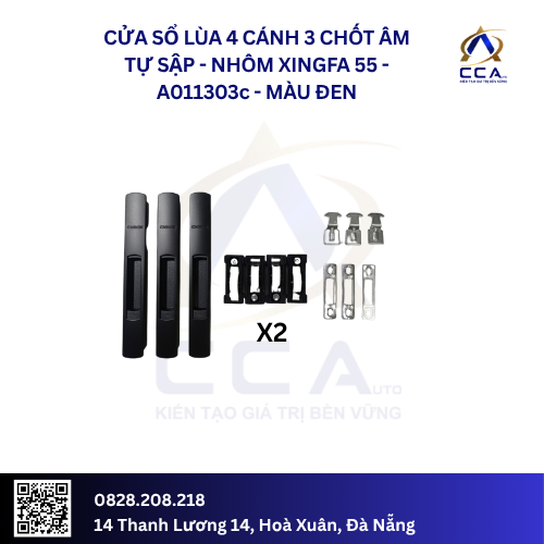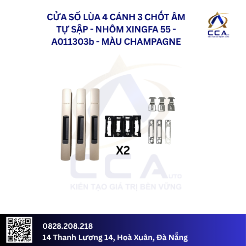 Bộ phụ kiện được thiết kế đồng bộ cho cửa sổ lùa 4 cánh Nhôm Xingfa Hệ 55, đảm bảo vận hành trượt êm nhẹ, tự khóa an toàn và độ bền sử dụng cao. Hệ 3 chốt âm tự sập giúp các cánh cửa tự động khóa khi đóng, gia tăng an ninh và sự tiện dụng cho người dùng.