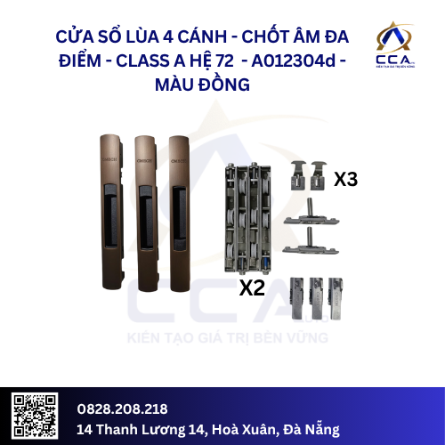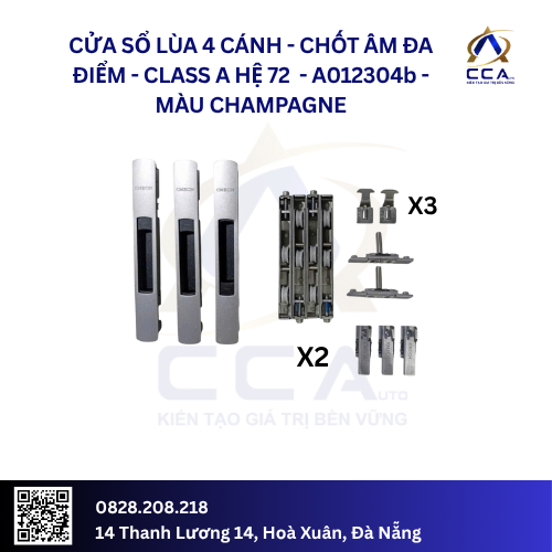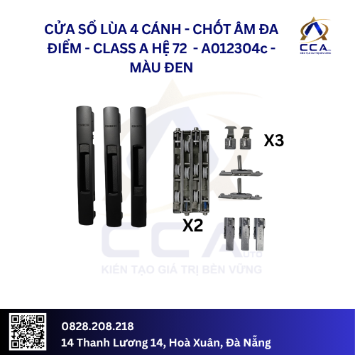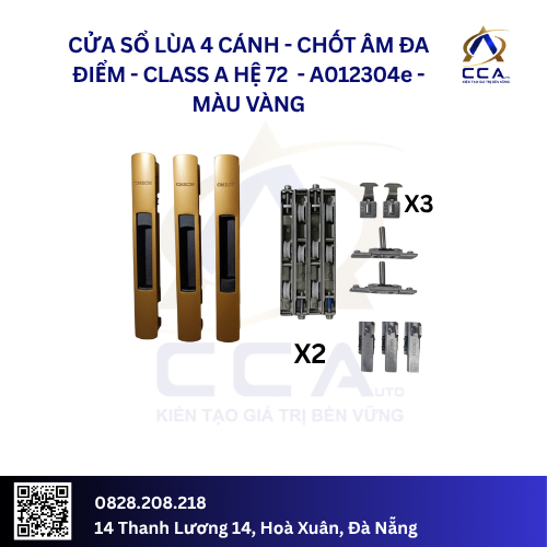 Cửa Sổ Lùa 4 Cánh Chốt Âm Đa Điểm – Class A Hệ 72 – A012304 (Combo)