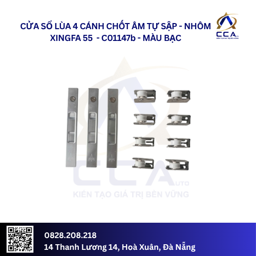 Bộ phụ kiện cửa sổ lùa 4 cánh Xingfa hệ 55 (3 chốt âm tự sập) là dòng sản phẩm cao cấp và đồng bộ, được thiết kế riêng cho hệ nhôm Xingfa tiêu chuẩn. Với kết cấu vững chắc, vật liệu bền bỉ và tính năng vận hành êm ái, bộ phụ kiện này mang đến hiệu suất hoạt động ổn định, độ kín khít cao và tuổi thọ sử dụng lâu dài cho cửa sổ lùa nhiều cánh.