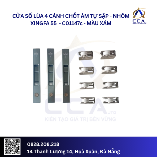 🖼️ Cửa Sổ Lùa 4 Cánh Chốt Âm Tự Sập – Nhôm Xingfa 55 – C01147 (Combo)