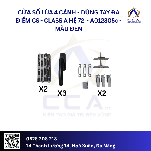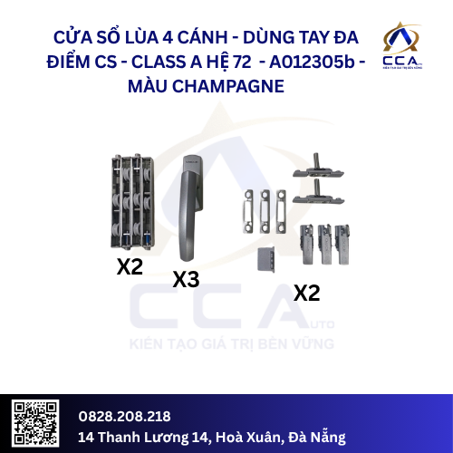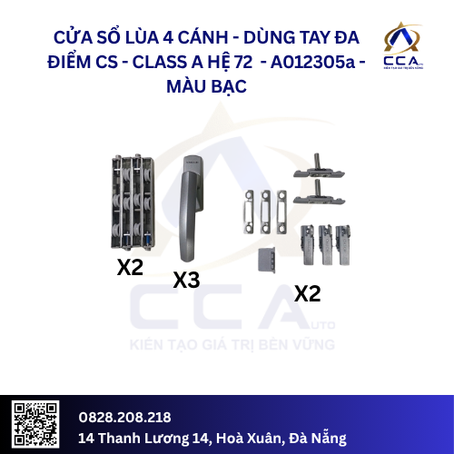 Cửa Sổ Lùa 4 Cánh Dùng Tay Đa Điểm CS – Class A Hệ 72 – A012305 (Combo)