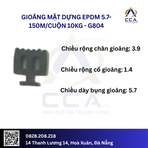 Gioăng Mặt Dựng EPDM 5.7 (Mã G804) là loại gioăng cao su EPDM chất lượng cao, được thiết kế chuyên biệt cho hệ vách kính mặt dựng với độ dày khe 5.7mm. Điểm nổi bật là quy cách đóng gói tiện lợi 10kg/cuộn (khoảng 150m), giúp các nhà thầu dễ dàng tính toán và quản lý vật tư. Gioăng EPDM 5.7 đảm bảo khả năng chống thấm, cách âm và chống lão hóa tuyệt vời, là phụ kiện không thể thiếu để nâng cao độ bền và hiệu suất của công trình.